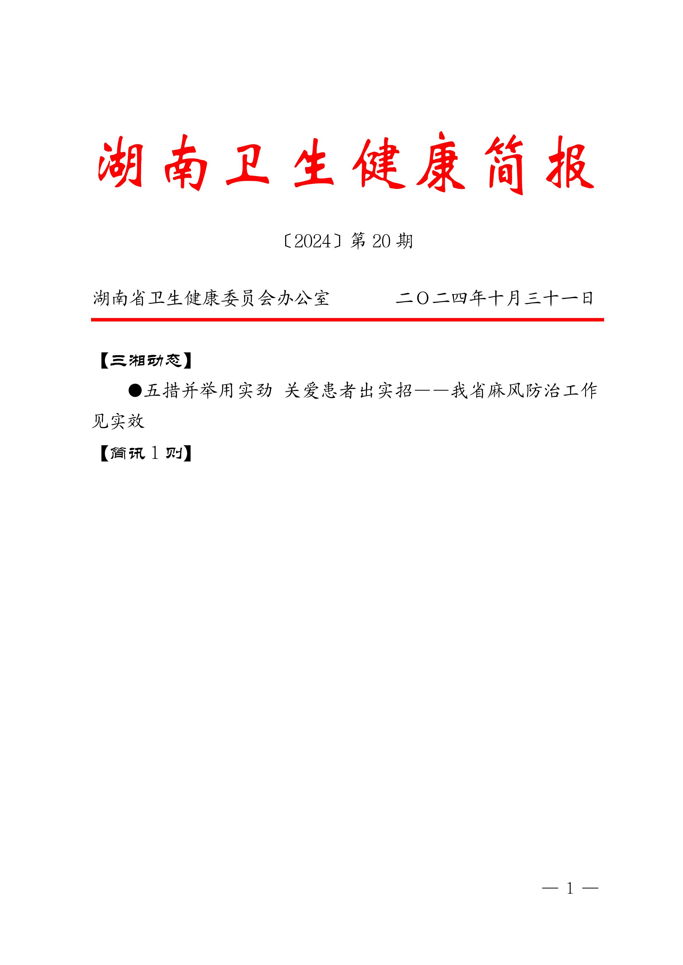 湖南卫生健康简报[2024]第20期