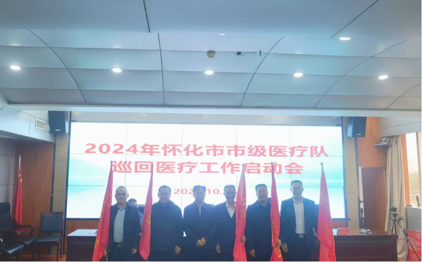 10月23日上午,怀化市卫健委组织召开2024年怀化市市级医疗队巡回医疗工作启动会,派出七支巡回医疗队(69人)分赴9个县(市、区)开展巡回诊疗,标志着基层群众在“家门口”就可以享受到“大”医院专家的诊疗服务。