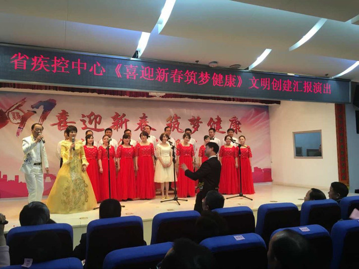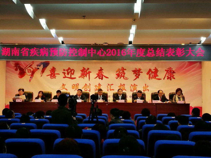 为表彰先进,树立榜样,更好地发挥典型引领和示范带动作用,进一步巩固文明创建工作成果,1月23日下午,湖南省疾控中心在科技楼十七楼大厅隆重召开2016年度表彰大会暨“喜迎新春,筑梦健康”文明创建汇报演出。全体中心领导、干部职工参加会议。