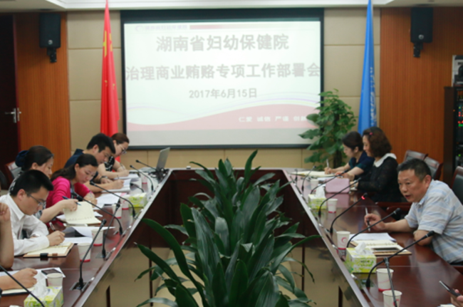 6月15日下午,湖南省妇幼保健院在医院创新楼第四会议室召开治理商业贿赂专项工作部署会。会议由纪委书记主持,党委办公室、院办公室、监察审计部、人力资源部、医务部、规划财务部等18个相关责任部门的负责人参加了此次会议。