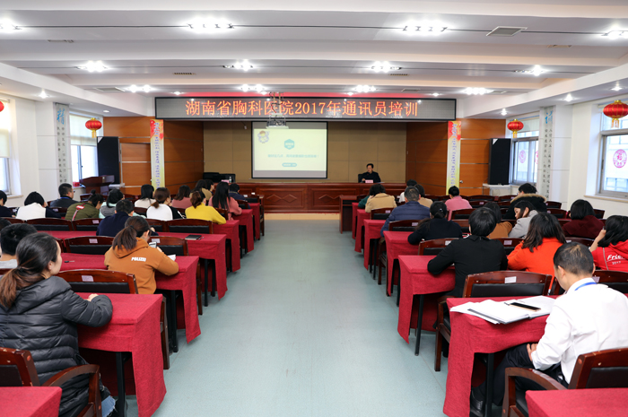 为进一步提高医院通讯员新闻写作水平,提升医院新闻宣传质量,12月26日下午,湖南省胸科医院举办了2017年通讯员培训会。培训邀请中南大学硕士、湖南医聊创始人主讲,医院副院(所)长出席并致开班动员,党委书记、纪委书记列席会议,全院60余位通讯员参加了培训。