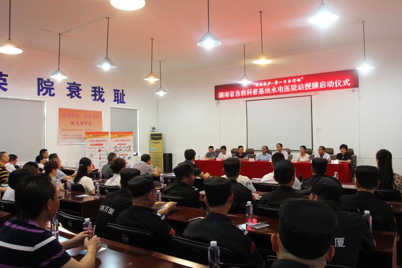 为响应湖南省政府提出将公众急救知识技能普及,倡导建设“健康湖南”的精神,强化急救“三个一”理念,让更多的居民了解急救知识并加入到现场救护行动,进一步提高广大群众对突发事件的应急能力,7月18日上午,湖南省人民医院在省水利厅职工医院隆重举行了“救在身边——现场救护第一目击者行动”湖南省急救科普基地授牌启动仪式。省水利厅、省人民医院的相关领导出席并授牌。