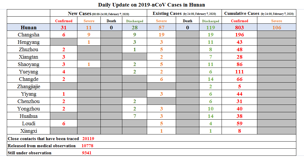 湖南省新型冠状病毒感染的肺炎疫情每日信息(含英法德日韩老俄7国语言版本)