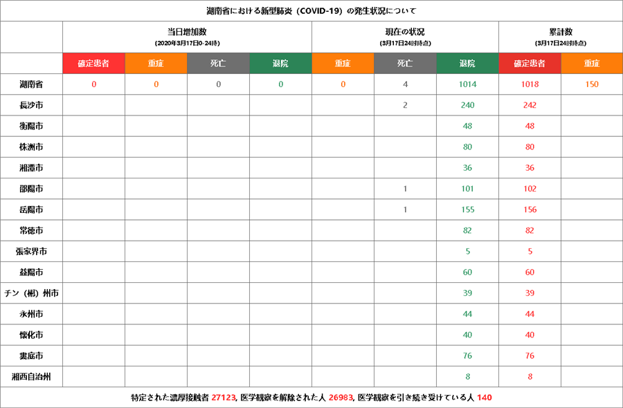 3月18日湖南省新型冠状病毒肺炎疫情信息(含中英法德日韩老俄8国语言版本)
