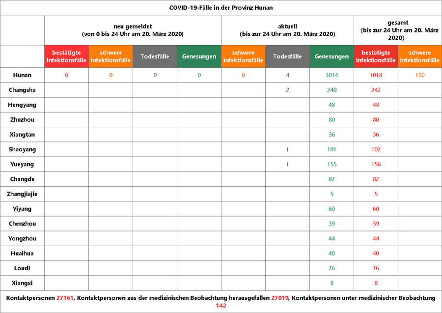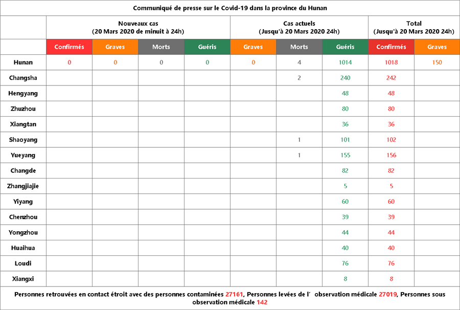 湖南省新型冠状病毒肺炎疫情信息(截至3月20日24时)