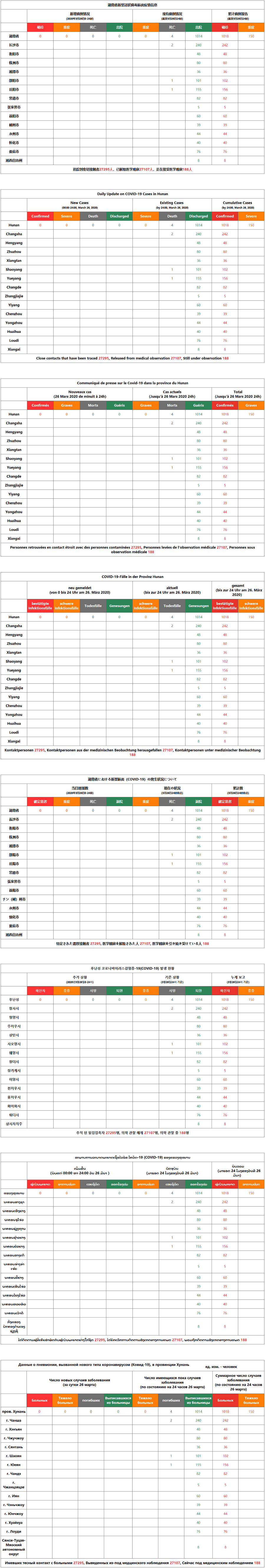 3月27日湖南省新型冠状病毒肺炎疫情信息(含中英法德日韩老俄8国语言版本)