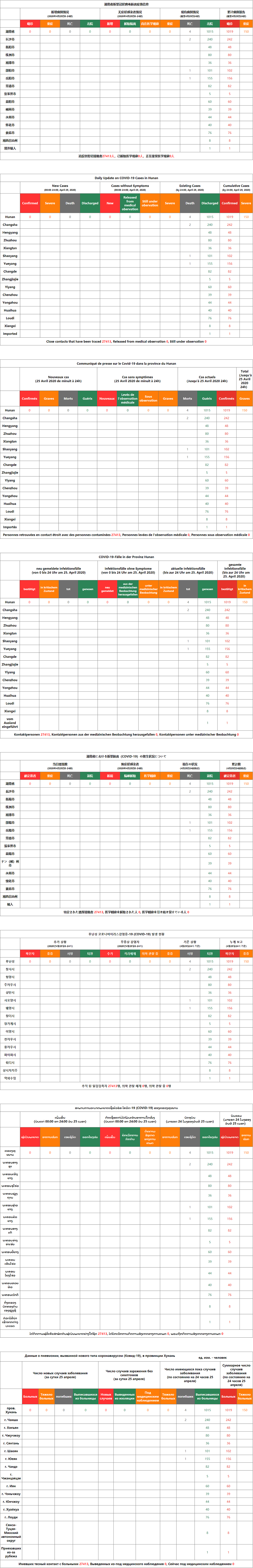 4月26日湖南省新型冠状病毒肺炎疫情信息(含中英法德日韩老俄8国语言版本)