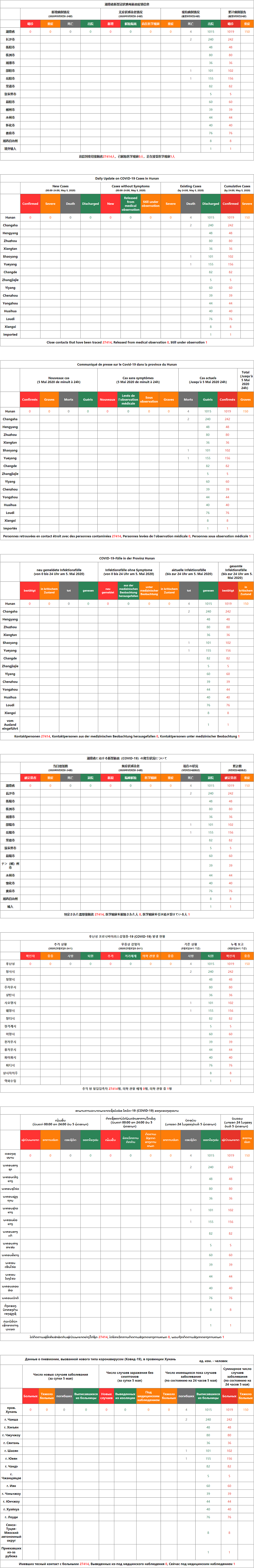 5月6日湖南省新型冠状病毒肺炎疫情信息(含中英法德日韩老俄8国语言版本)