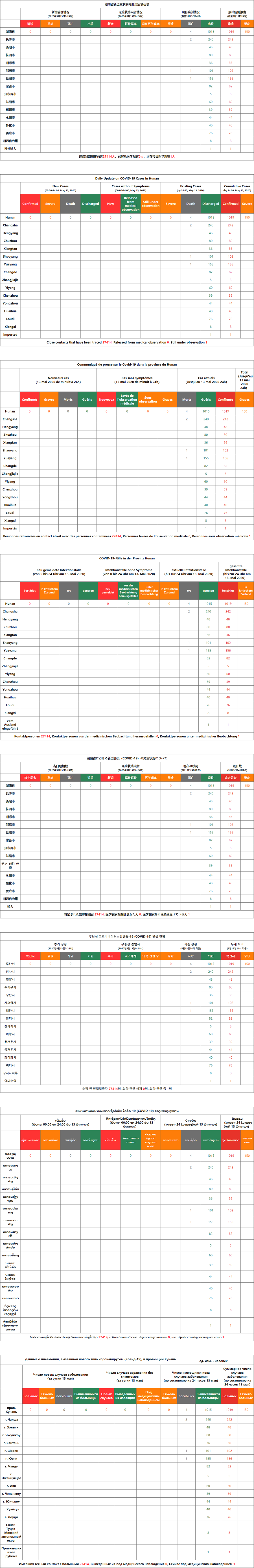 5月14日湖南省新型冠状病毒肺炎疫情信息(含中英法德日韩老俄8国语言版本)