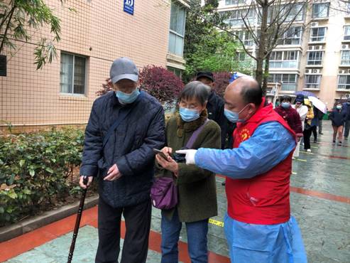 3月25日,长沙市雨花区启动新一轮核酸检测区域筛查。省药具中心党员、干部志愿者们响应号召,积极投身单位所在的雨花区东塘街道华银园社区,参与华银园小区核酸检测点疫情防控志愿服务活动,与社区工作人员并肩同行,做好核酸检测点现场秩序维护、健康码查验、体温测量、人员引导等工作,以实际行动让“志愿红”守护“健康绿”。