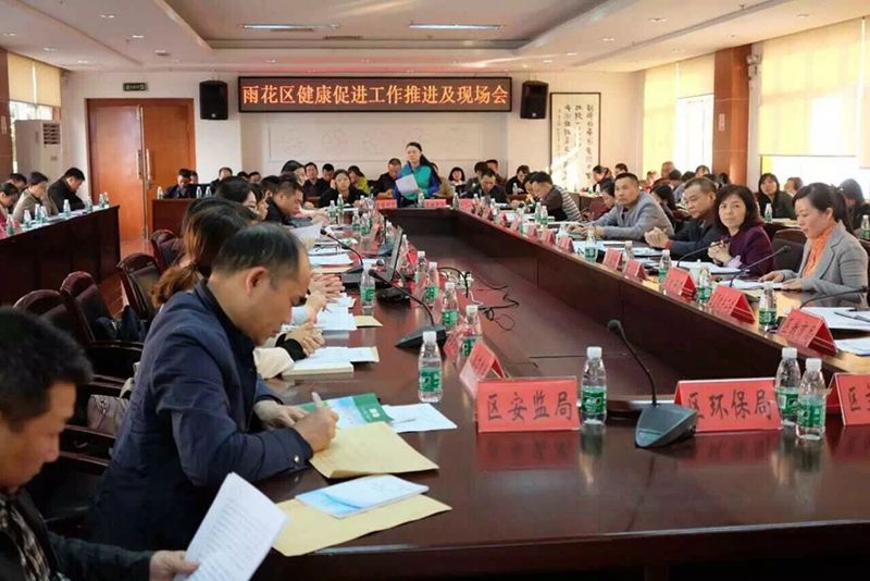 自2015年10月成功申报国家健康促进区试点项目以来,雨花区把健康促进区建设列入雨花民生工程,以打造“健康雨花 幸福雨花”为整体目标,贯彻落实“将健康融入所有政策”策略,构建“人人为健康、健康为人人”的核心健康观,打造了一批颇有特色的健康促进示范点,希望以点带面,以示范带动创建。11月3日下午,“雨花区健康促进工作推进及现场会”顺利召开,区政府副调研员盘正元、区卫计局局长周宏伟、区卫计局副局长罗宁以及健康促进各部门单位相关负责人等100余人参会。