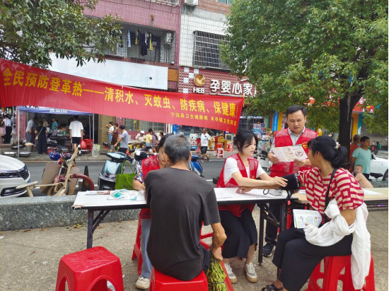 9月17日,宁远县禾亭镇卫生院利用中秋赶集日组织医务人员在禾亭集市开展登革热防治知识普及宣传活动。