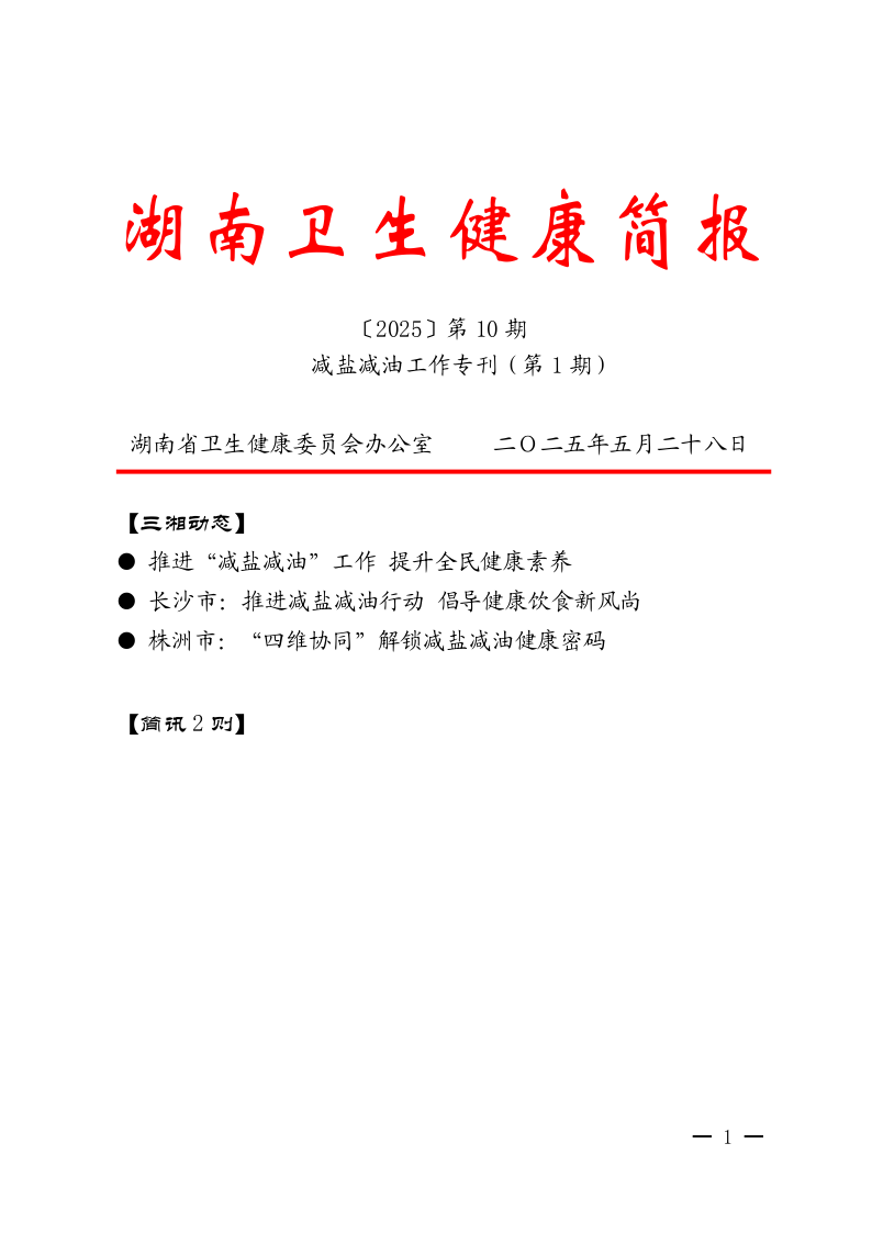 湖南卫生健康简报[2025]第10期