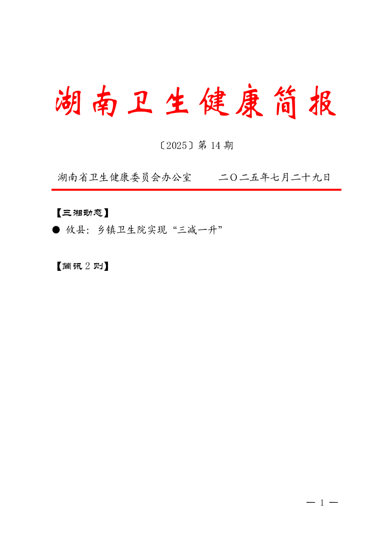 湖南卫生健康简报[2025]第14期