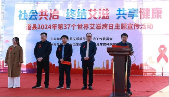 在第37个“世界艾滋病日”来临之际,为进一步推动全县艾滋病防治工作,提高广大群众对艾滋病的认识和防范意识,营造全社会参与艾滋病防治工作的良好氛围,12月1日,道县在敦颐广场举办“世界艾滋病日”主题宣传活动。道县副县长出席活动,县防艾委成员单位负责人参加。