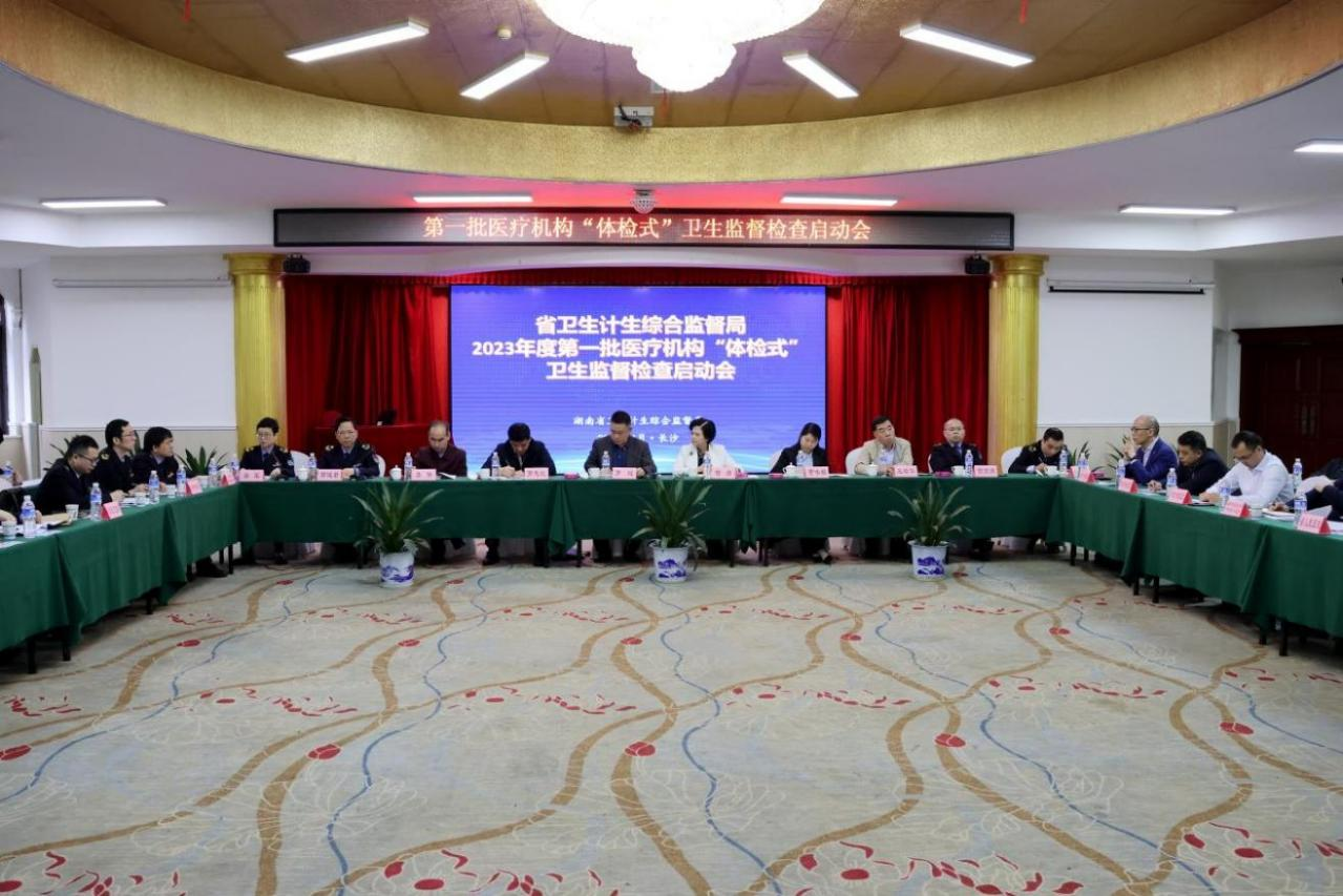 2023年4月4日,湖南召开“2023年度第一批医疗机构‘体检式’卫生监督检查启动会”,正式开启对第一批8家公立医疗机构的“体检式”卫生监督检查,此次监督检查为期4个月,将对相关医疗机构依法执业、传染病防治、医疗质量与安全等方面的医疗管理情况进行全方位的卫生监督检查。医疗机构“体检式”卫生监督检查是湖南以习近平新时代中国特色社会主义思想为指导,深入贯彻党的二十大精神,把保障人民健康放在优先发展的战略位置,贯彻新时代党的卫生与健康工作方针,坚持以人民健康为中心,推动医疗卫生发展方式转向更加注重内涵式发展、管理手段转向更加注重科学化治理,建设中国特色优质高效的医疗卫生服务体系,不断增强人民群众就医获得感、幸福感、安全感的具体体现。