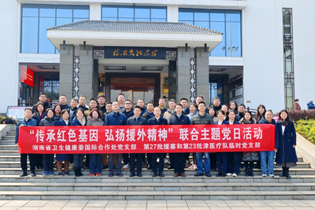 1月28日,湖南省卫生健康委国际合作处党支部与中国(湖南)第27批援塞拉利昂和第23批援津巴布韦医疗队临时党支部联合开展“传承红色基因,弘扬援外精神”主题党日活动,在红色教育中筑牢初心使命,为即将启程的援非医疗征程凝心聚力。
