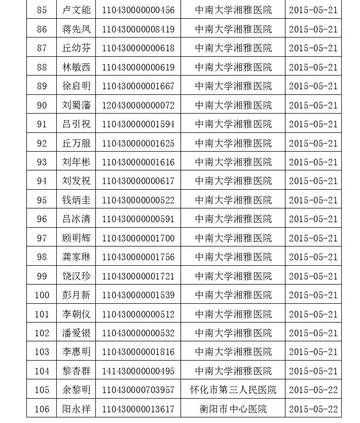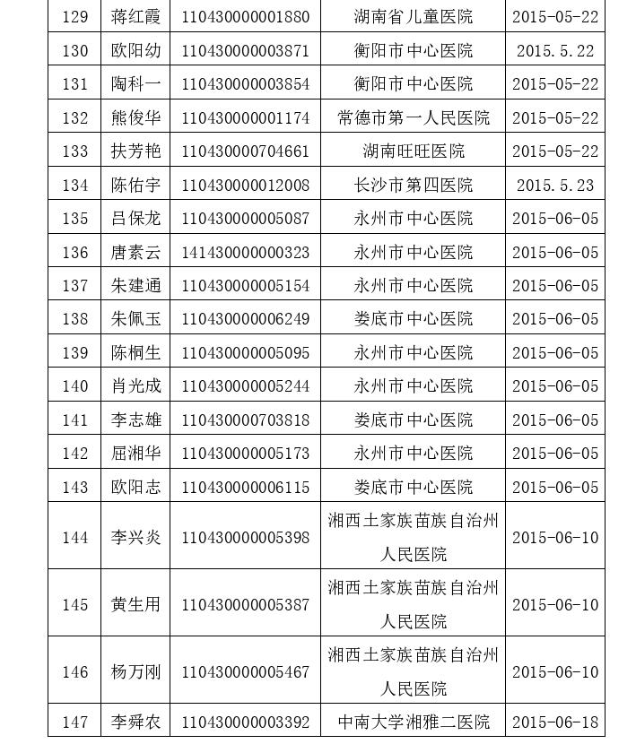 湖南省卫生计生委2015-2016年医师注销注册人员名单公告